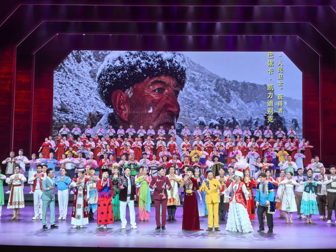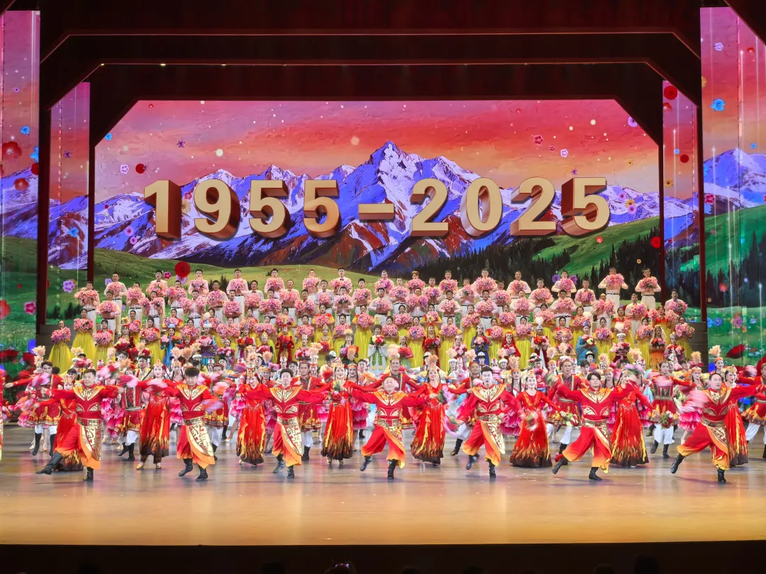 9月24日晚,庆祝新疆维吾尔自治区成立70周年文艺晚会在乌鲁木齐文化中心大剧院举行。我校“乐韵”合唱团62名师生以昂扬姿态、深情演唱亮相舞台,参演《序》《你的牵挂》等节目,用青春之声诠释民族团结力量,用艺术之美礼赞新疆70年辉煌变迁。