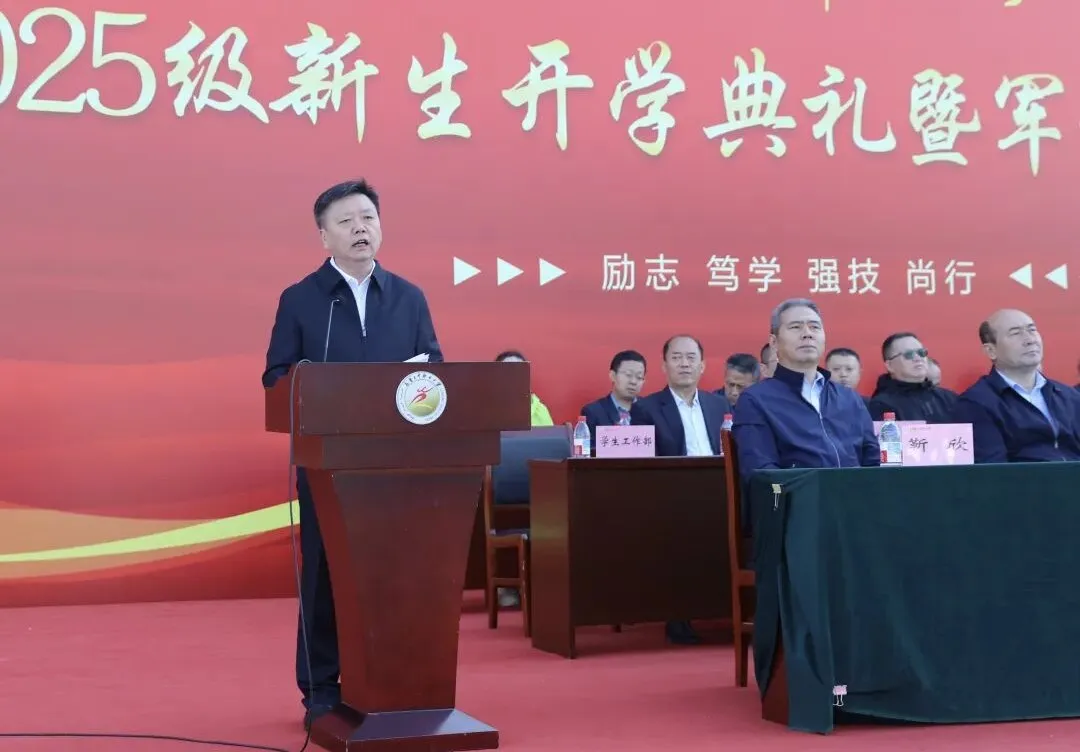 唐晓冰为大会致辞,祝贺2025级5829名新生圆满完成军训。他指出,今年是新疆维吾尔自治区成立70周年、学校建校 40周年,学校为新疆培养了众多高素质技能人才,2025级新生也将是学校历史发展的参与者。目前,学校已完成升本工作,本科生将获“双证加持”,专科生也会有多种学业上升通道。唐晓冰寄语同学们要涵养厚德品格,秉持律己宽人之风,树立家国天下之志,投身强国建设,让青春绽放绚丽之花
